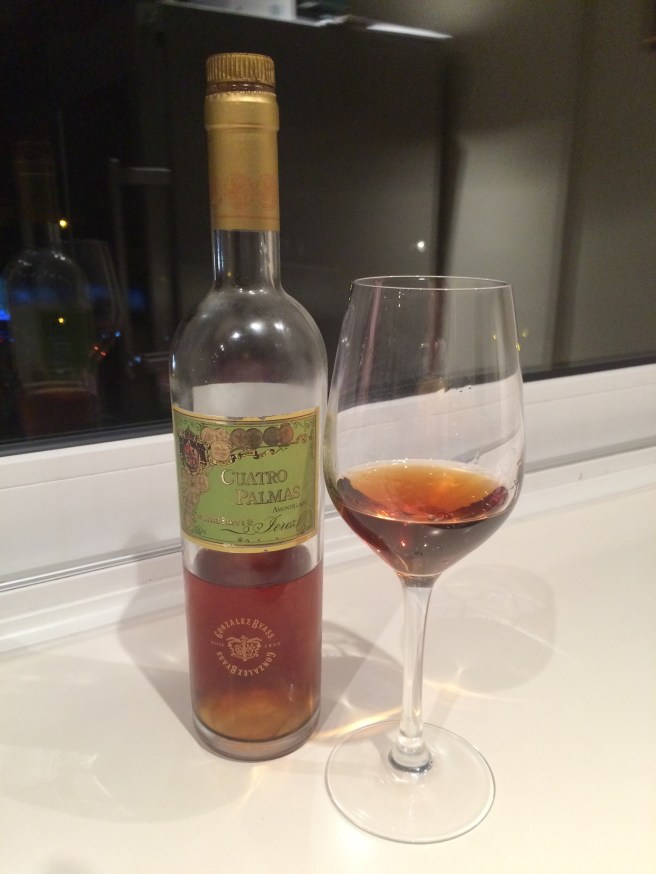 There was a glimpse earlier and here is the most venerable of the palmas range, a very old (infinitely, according to the label, but more likely around 45 years, according to earthly sources) amontillado from a single bota from the so-called “Museum Solera”.