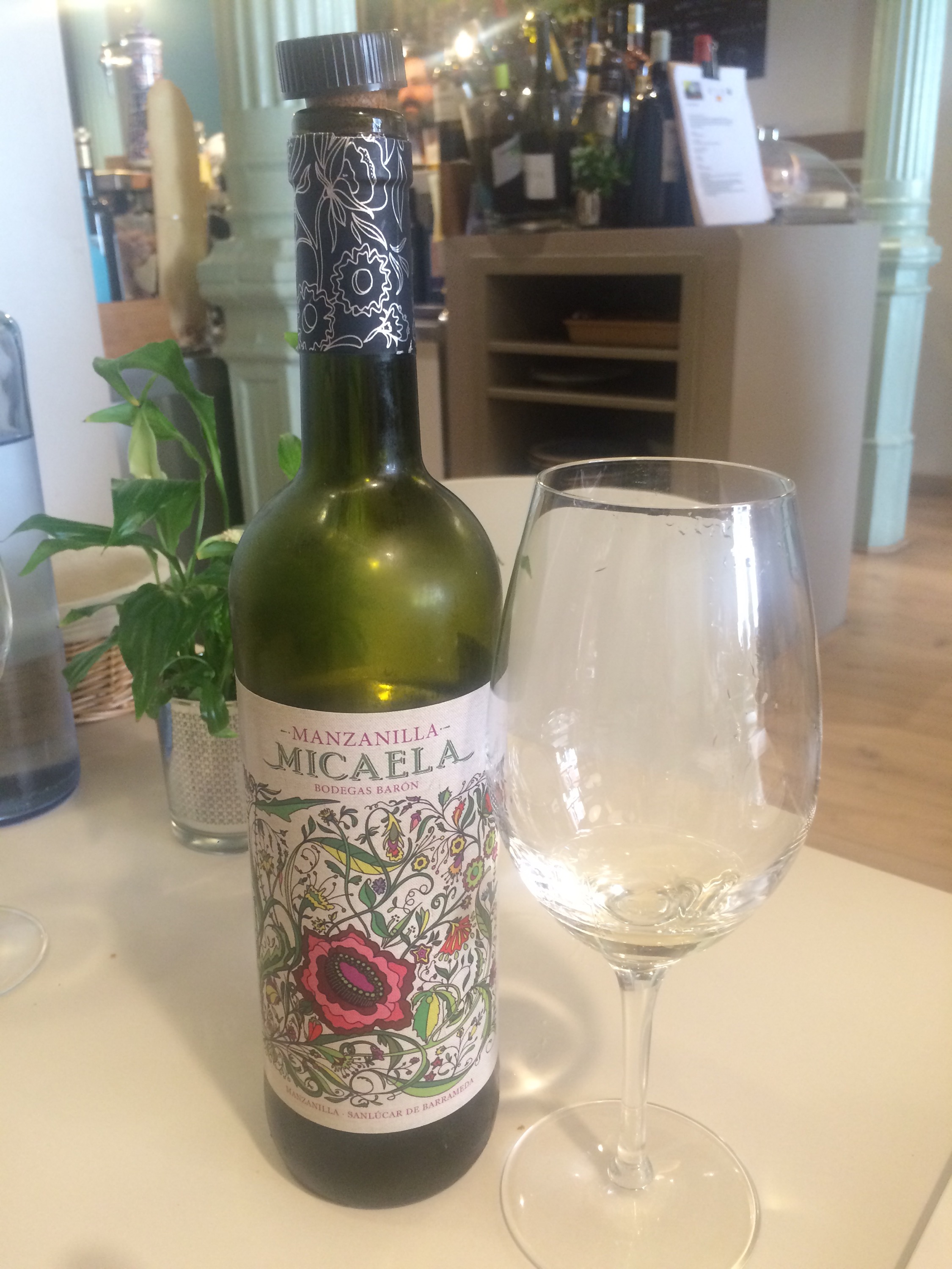 It is a pale pale yellow in colour – very much the epitome of sunshine in a glass. It has a very interesting nose too – between fruit and fresh sweet herbs maybe (I had just had a more classic manzanillla and the difference was marked). It is very fine in the mouth and had just enough salinity – in fact less than I expected. The fruit, herbs were not quite as prominent on the tongue but It is excellent and was a really refreshing way to start a meal.