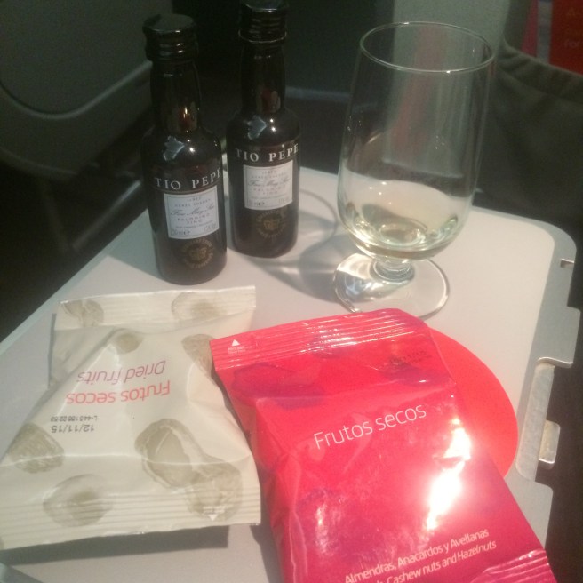 Iberia have played a blinder here. What a joyous sight these two little fellas are for a thirsty traveller after a dry day. (Doubly so since there is normally nothing worse than the 21:30 flight home – always delayed – so this is most welcome.) In the circumstances I am going to overlook the stemware and just enjoy.