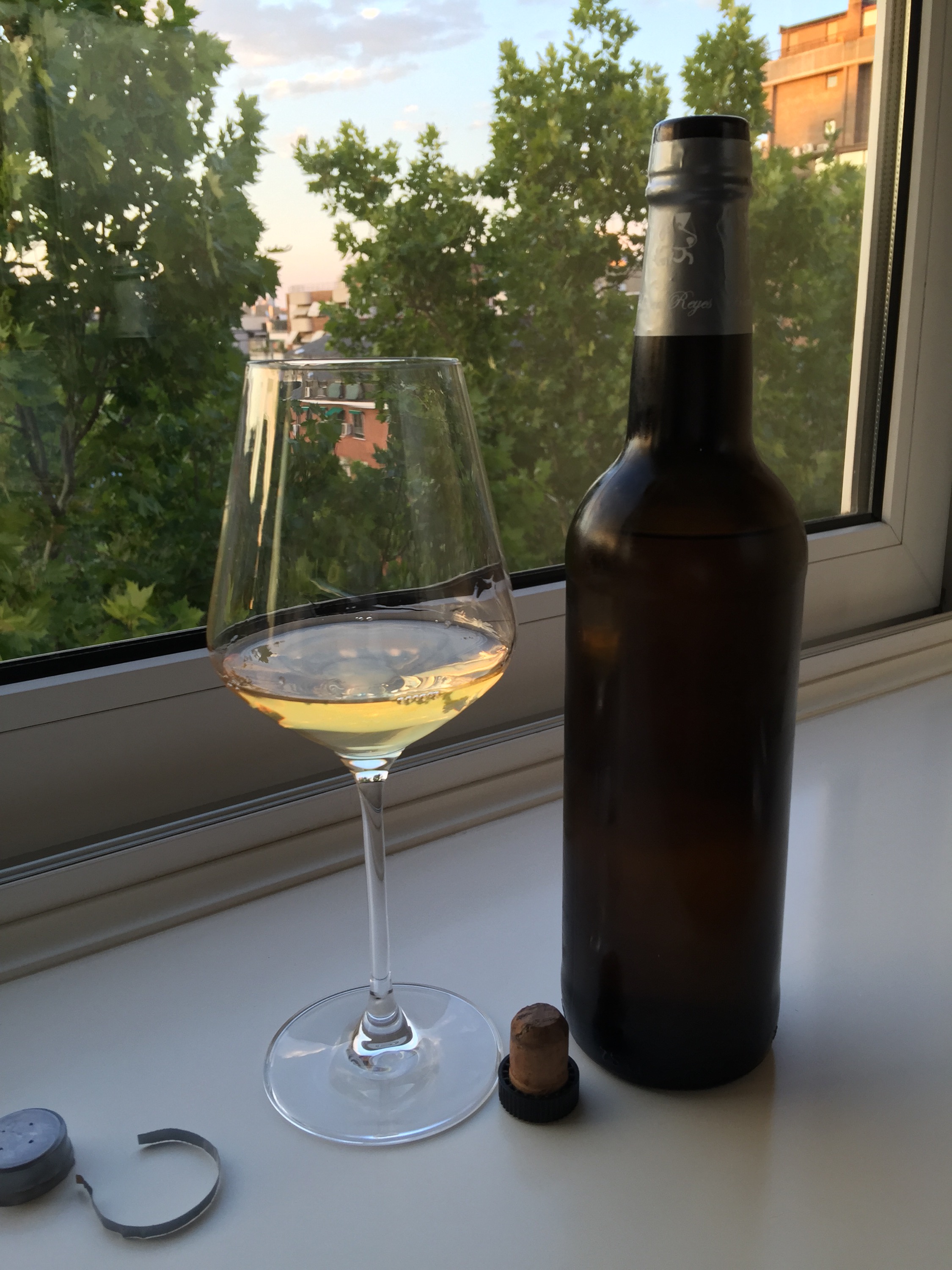 It is not one of the more aromatic manzanillas, but has a sweet aroma that is a bit more fruity than haybales – sweet dried herbs or maybe even dried apple flakes. There is also definitely some of the piercing cider/”catpiss” smell of the mosto coming through (I mean that in a good way).