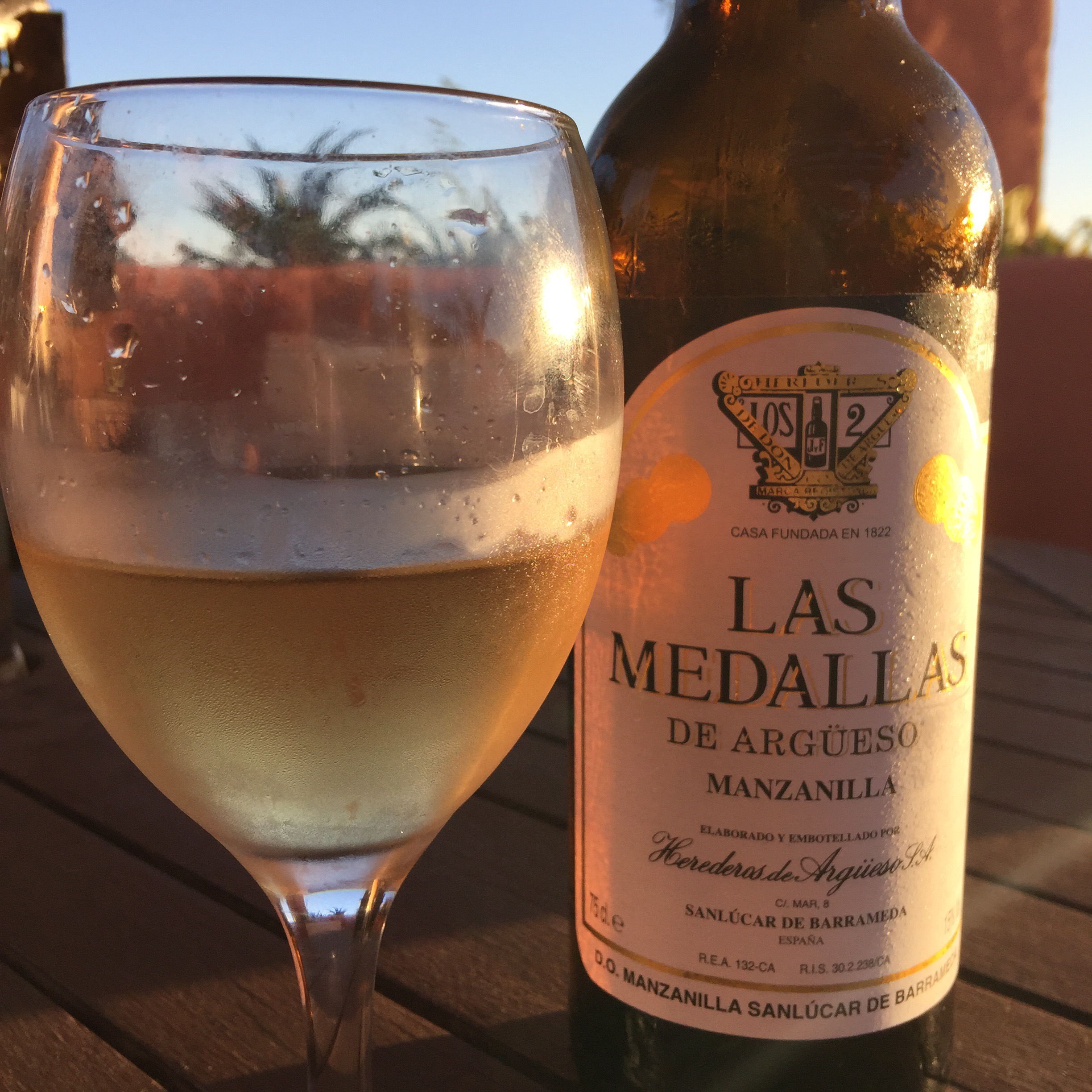 This is a standard manzanilla by Argueso acquired yesterday in a local supermarket for the princely sum of €3.99 and enjoyed as an aperitif in the evening mediterranean sunshine.