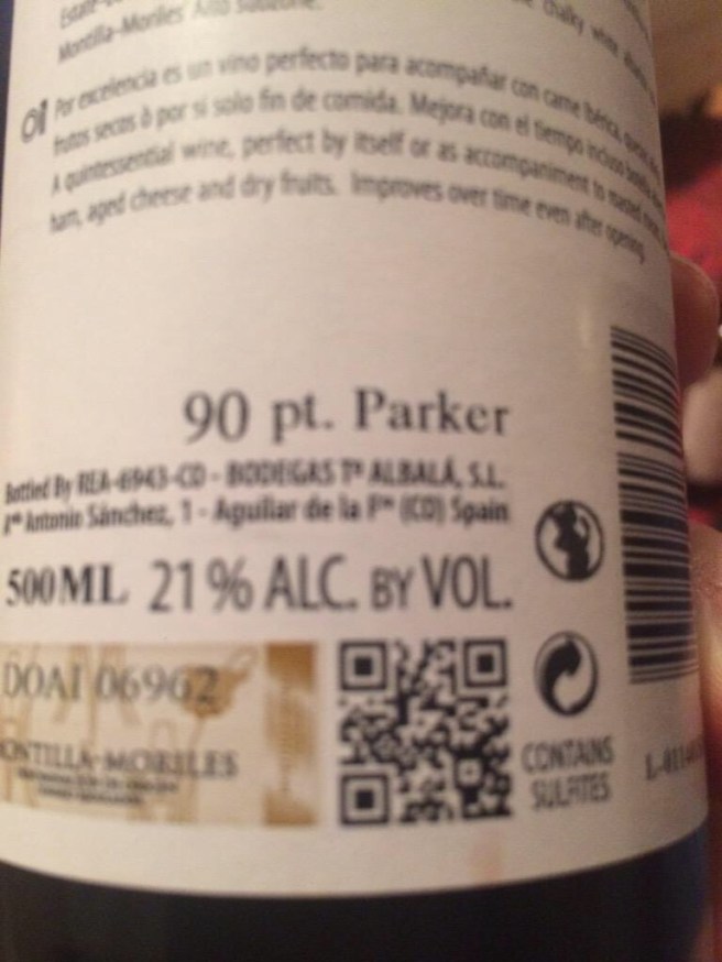 In the mouth you immediately notice the syrup-like texture from the high glycerol content. It has a nice zing but is not quite dry – not clear to me if it has been encabezado or just not quite dried out (given the name I assume the former). Overall the flavours are of honey and oaky red wine, with maybe a bit of raisin underneath. Nice smoky finish, but a bit sticky.