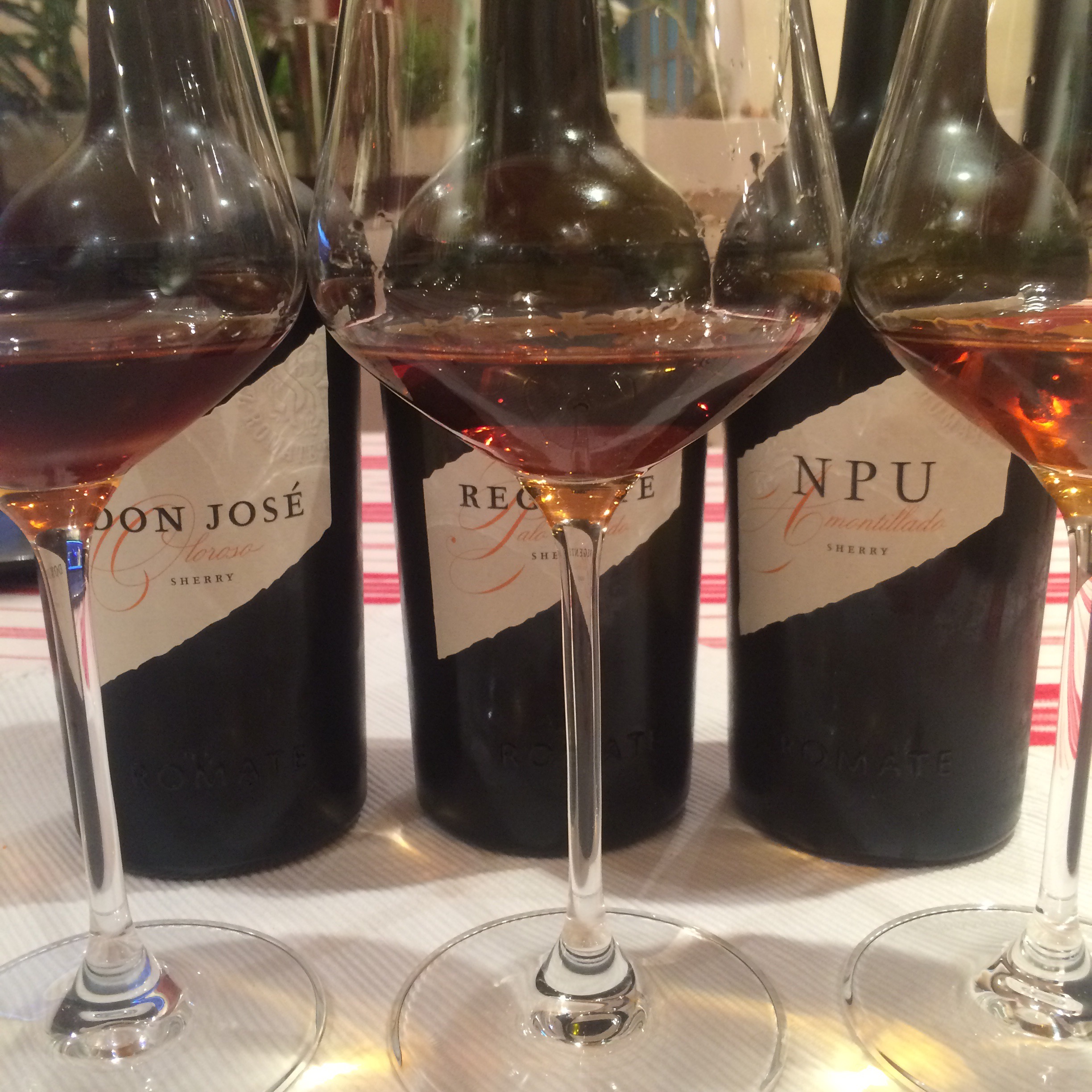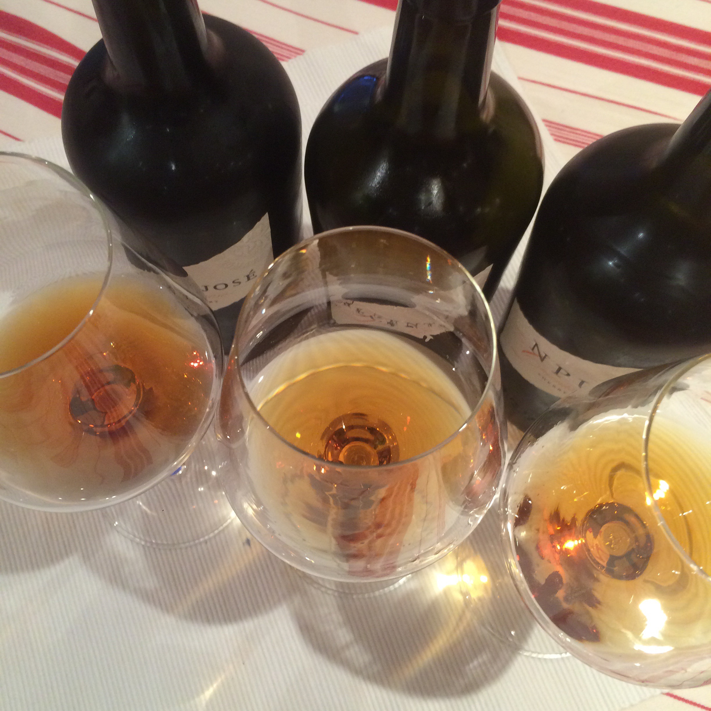 Good chance to taste an amontillado (NPU, far right), palo cortado (Regente, middle) and oloroso (Don Jose, left).