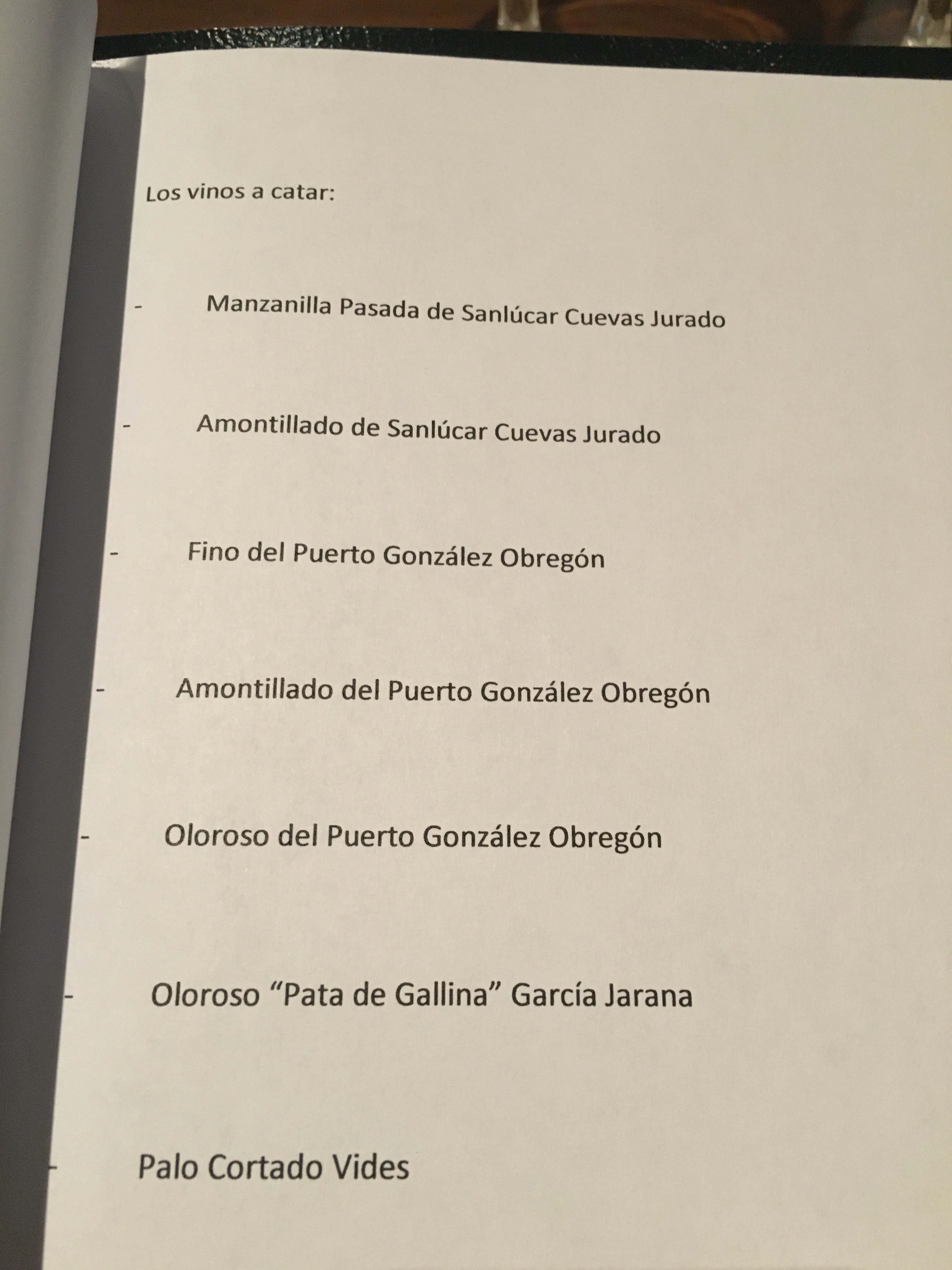 We had almost the entire range – the only one missing was the Jose de la Cuesta Fino del Puerto – covering the full spectrum from fino to oloroso and the whole region from Sanlucar to el Puerto. There were some real gems – the Fino del Puerto and the Oloroso Pata de Gallina were my favourites – but the overall level was excellent.