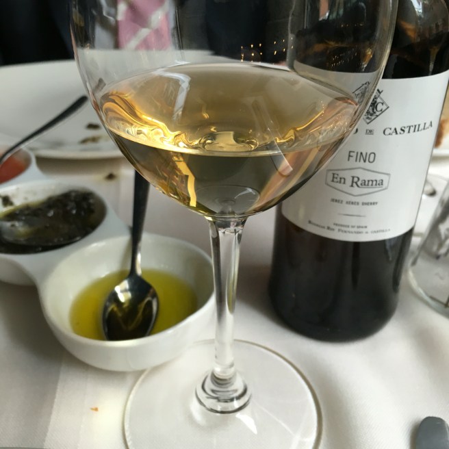 More importantly, perhaps, some quite superb food to accompany the sherry. In addition to the menu there was a long list of off menu seasonal dishes – and no nonsense either, just quality old school cooking. We had a glass of the Vintage 2006 with some spectacular guisantes lagrima (la caviar de la huerta – see above) and some baby beans with butifarra negra and then a spicey tartare that was brilliant with the Fernando de Castilla Fino en Rama 2014. Really high class stuff .