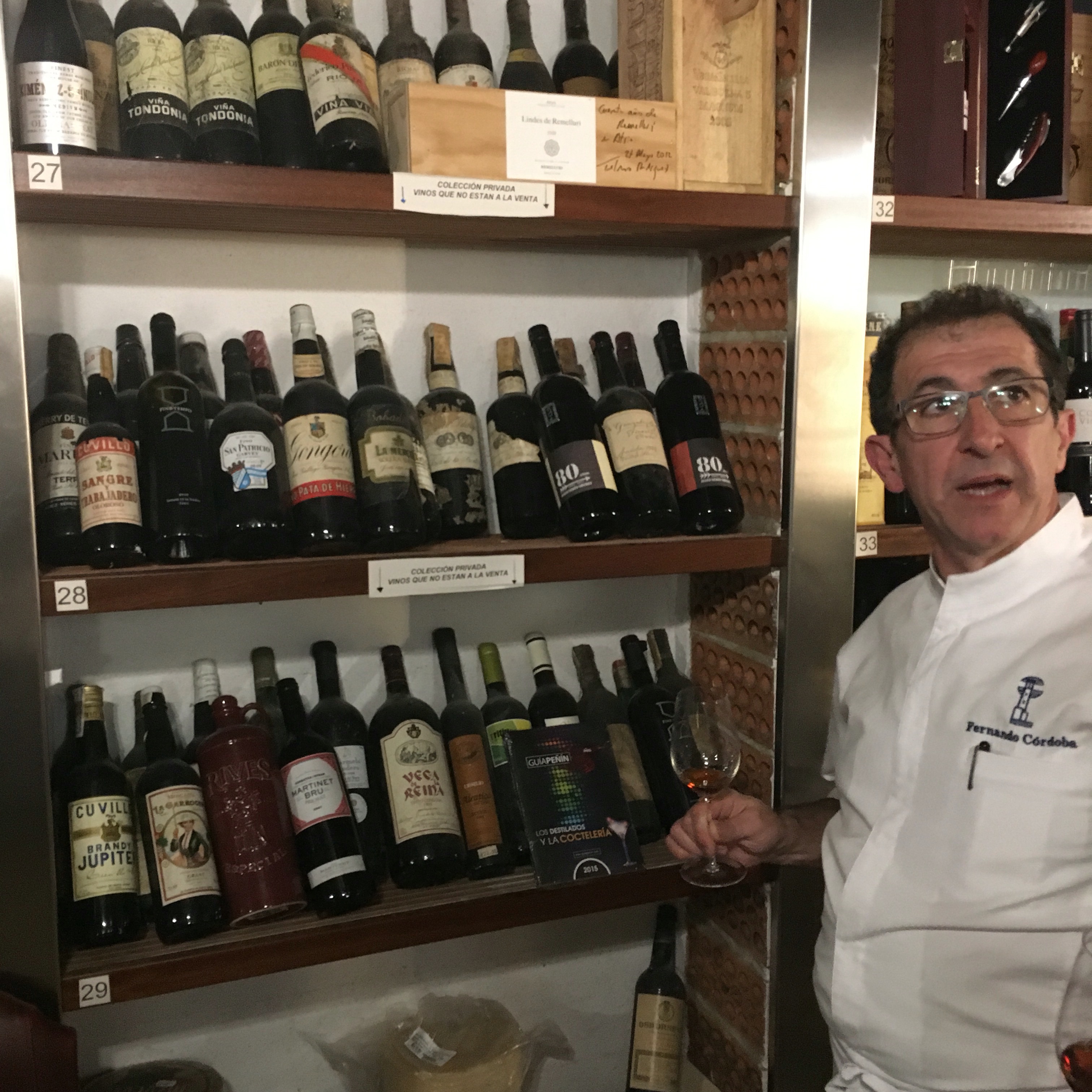 On a recent trip down to El Puerto de Santa Maria we had dinner at El Faro del Puerto and I felt I had to post something. We went for the wine list and tried a lot of cracking stuff. Although Jaime, the sommelier, wasn’t around, the list was excellent and the private stash of Don Fernando (part of it and the owner in the pic above) was even better: in turns outstanding and outstandingly eclectic.