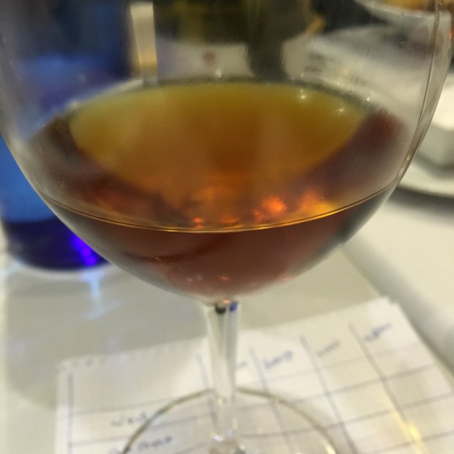 In colour it is orange/yellow/brown and a lovely shine to it. On the nose a very nice caramel and a touch of citrus – maybe the contrast with the callos we had on the table but it just had a touch of freshness to it.