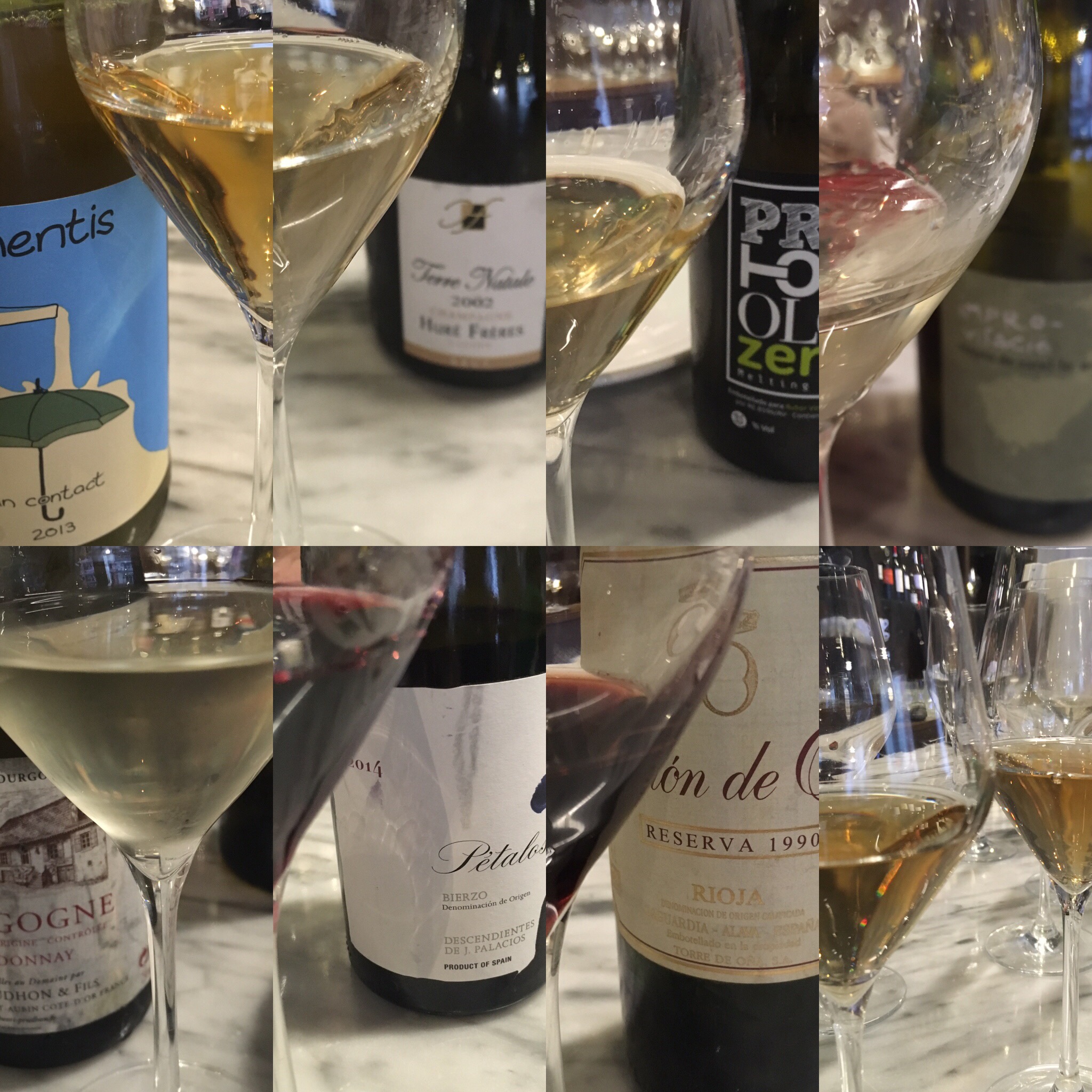 It makes it a great place to come and try new things and also to try out your blind tasting skills. Just look at the outstanding, original wines we tasted blind yesterday (the record shows that I got one of them dead right and got the regions and varieties right for two others, although I whiffed in humiliating fashion on the only manzanilla we tried). It is also a great place to run into fellow wine lovers – yesterday was no exception on that score either.