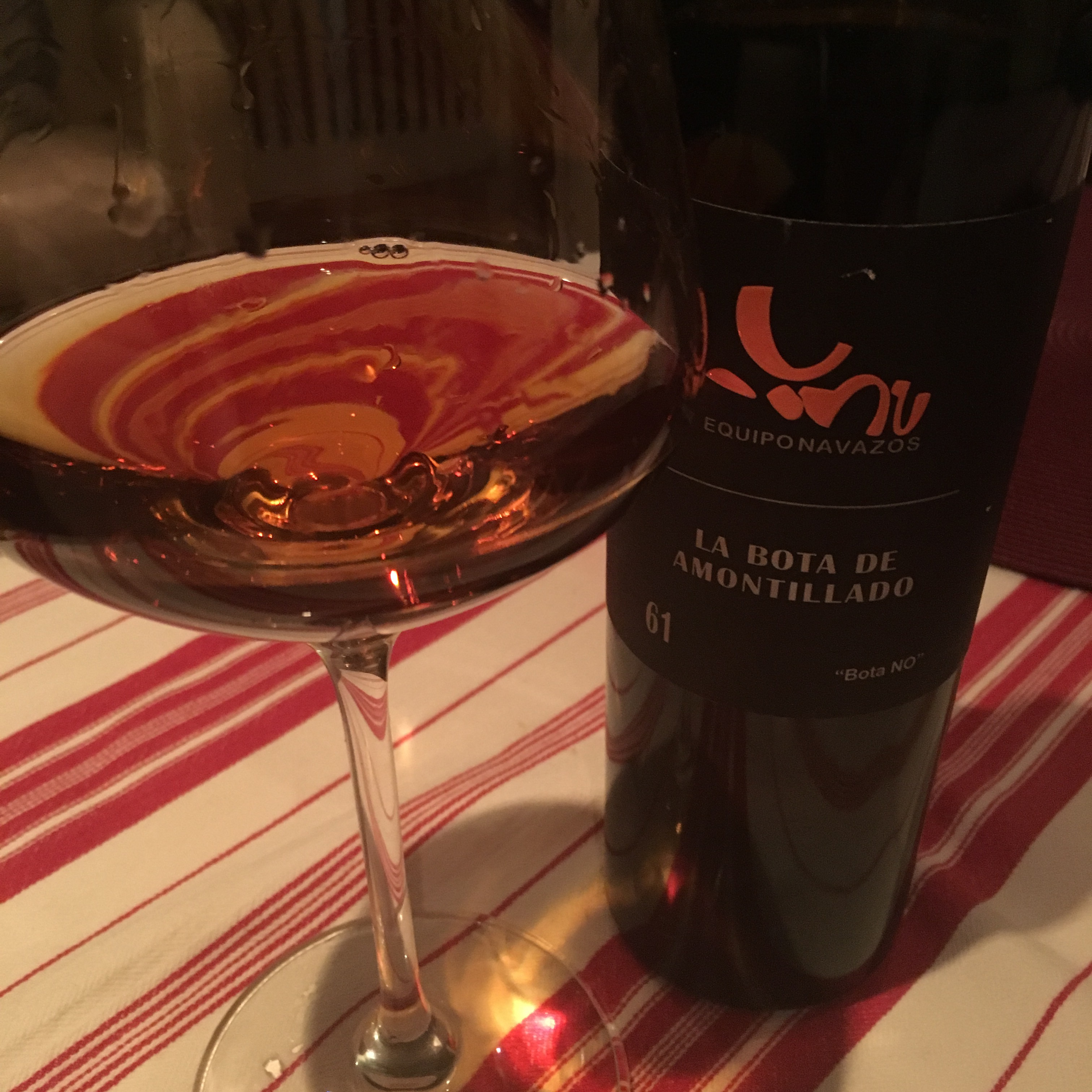 Another exceptional wine by Equipo Navazos and a beautiful old Sanlucar amontillado by anyone’s standards. The second time I have had this one and I can see why I bought another (from the guys at Coalla Gourmet). I was inspired to taste it again – in part by my recent brushes with Sanlucar amontillados and olorosos, and in part because my kiwi mucker Erik Burgess has apparently been at dinner tonight with the great JB, but what put the thought in my head was really a brilliant solo tasting session by Victor de la Serna.