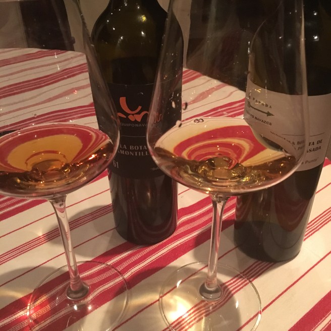Two classic Sanlucar wines that come from the same bodega and share so much: intense and rich in flavour, with mineral sharpness, elegance and freshness. But while the older amontillado is bitter, fierce and acidic, with flavours of tobacco and wood, the manzanilla pasada is smooth, has that illusion of fruit and and big yeasty, haybales and bread.