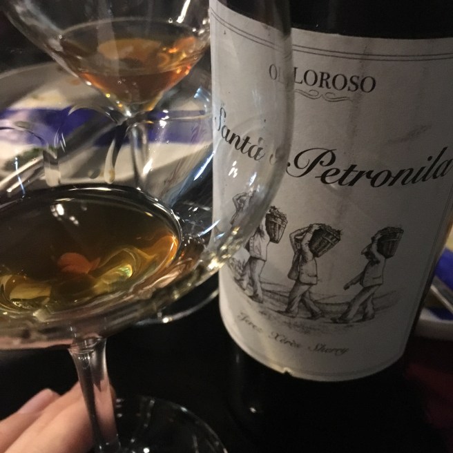 As you can’t quite see it was a slightly yellowish brown in colour – clear but not fully crystalline. Has quite a spirity nose, with nuts and toffee laced with a bit of brandy, and then a nice bit of acidity first up on the palate. Not a big mouthful in terms of structure but a pleasant one with half toasted hazelnuts. All in all not your typical oloroso – comes across as a little lighter and finer than most.