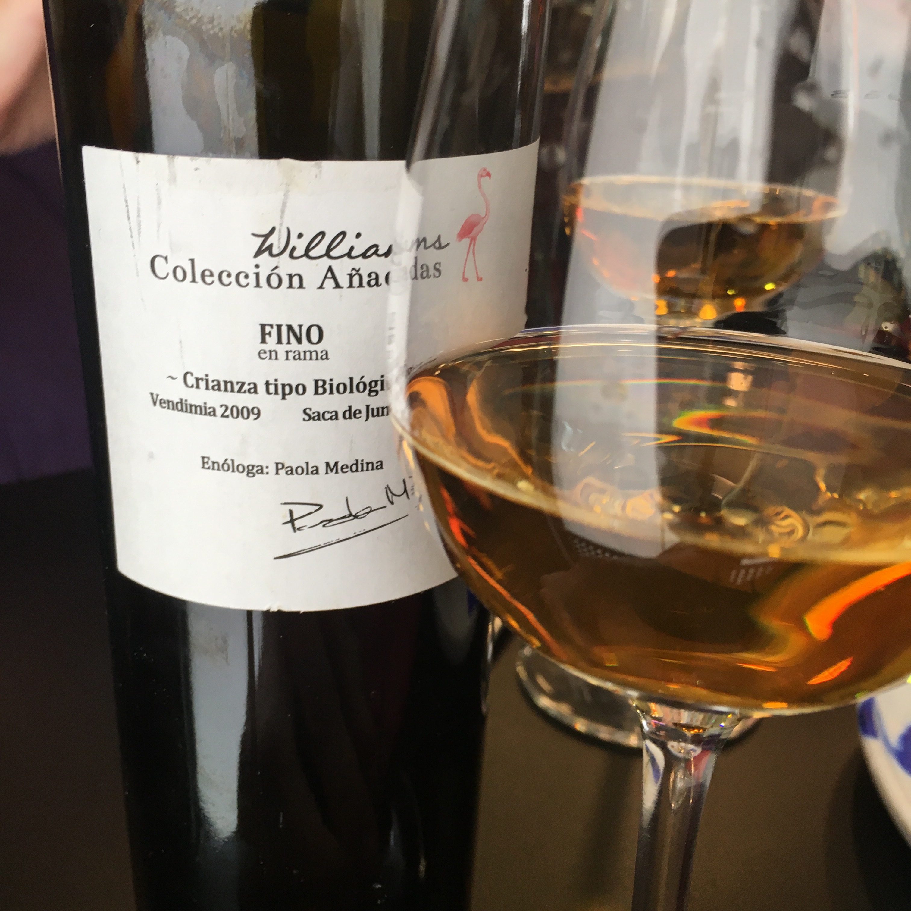 It is a fino from palomino grown in the Añina and Carrascal (de Jerez) pagos and harvested in 2009. Rather than being fed into a solera it has been statically aged as a vintage wine, with populations of flor living and dying in the one barrel. It was released by Williams & Humbert as part of a fantastic boxed set.