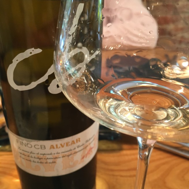 As you can just about see it was a pale straw colour with just a hint of green. A punchy nose with a touch of yeasty bread about it. Was interesting to try it after the Marques de la Sierra, because whereas that wine was leafy and had notes of fennel and anise this one takes it up a notch and has that liquorice root flavour I associate with pedro ximenez finos. Has a slightly richer texture to it. If the Marques was silky this has a bit more velvety, oily body – and a warm, savoury palate and a nicely integrated salinity that is more sapid than saline.