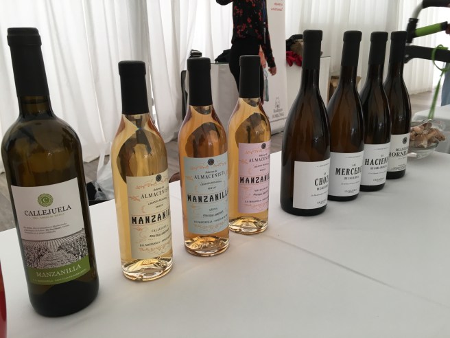 I have already had the chance to write about their latest releases – first at the bar of the late, beloved Territorio Era, and later at an excellent event organized by Montenegro vinos. They are single vineyard manzanillas, and in fact they are also single vintage wines – from 2014-, although they are not able to market them as such since not all “i”s were dotted and “t”s crossed, so at the time I first wrote about them I called them something different. Anyway here they are, resplendent at the Cuatrogatos Wine Fest with their clear bottles (which I personally think is a quality touch), classy new labels and their official title of “manzanilla” (a reminder once again that although two of the three are from Jerez vineyards, what counts is where they are made into wine for these purposes).