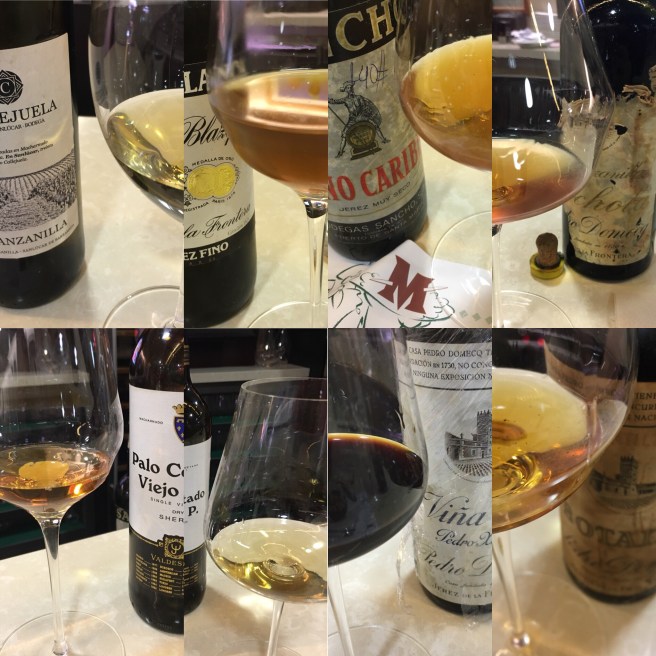 And just when I thought I was going to make my train with relative ease the final, exceptional treat: a little, very old bottle of Domecq’s Amontillado Botaina. A little cracker that was amber gold in colour – much lighter in colour than the finos – and in absolutely perfect condition, with hay bales and vinegary toffee in the nose and a superb combination of zing, acidity and sapidity on the palate. Absolutely superb, and there were tears in my eyes as I swigged it down and headed out, dazed and a little awed, in search of a taxi.