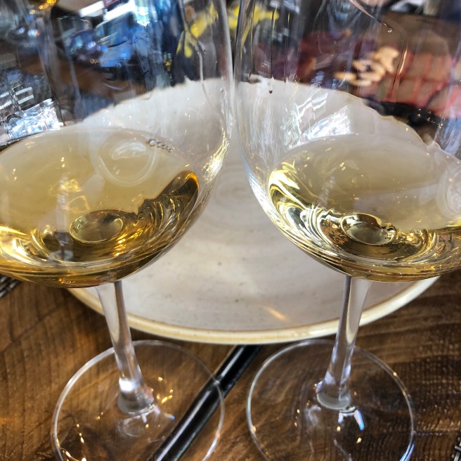 It looks like it has oxidized and you definitely get some of that in the nose and on the palate. Has an old, stewed apple character to the nose, it is softer around the edges – less sharpness and zing on the palate – and in flavour terms has a lower register – stewed rather than fresh citrus, less fresh bread yeastiness and just a hint of bitter salad at the end.