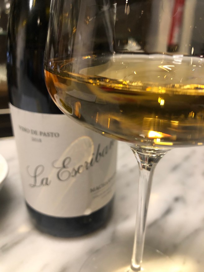 And here is one. The latest from Willy Perez, this appears to be an unfortified white wine – the label says from Macharnudo on tosca de Barajuelas soil. “Only” 13 and a half degrees and I don’t know much about it but would guess we have a bit of asoleo or a relatively late harvest. (Vino de pasto translates more or less as table wine so no clues there.)