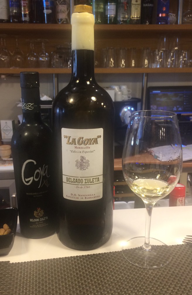 On to the “La Goya” – a special edition manzanilla which I find extremely elegant. Pale in colour and very floral in the nose – really expresses the chamomile it is named for – the salinity is integrated and it has all the vegetable, yeasty bread flavour you would expect. Hits the spot and sets me up for lunch.