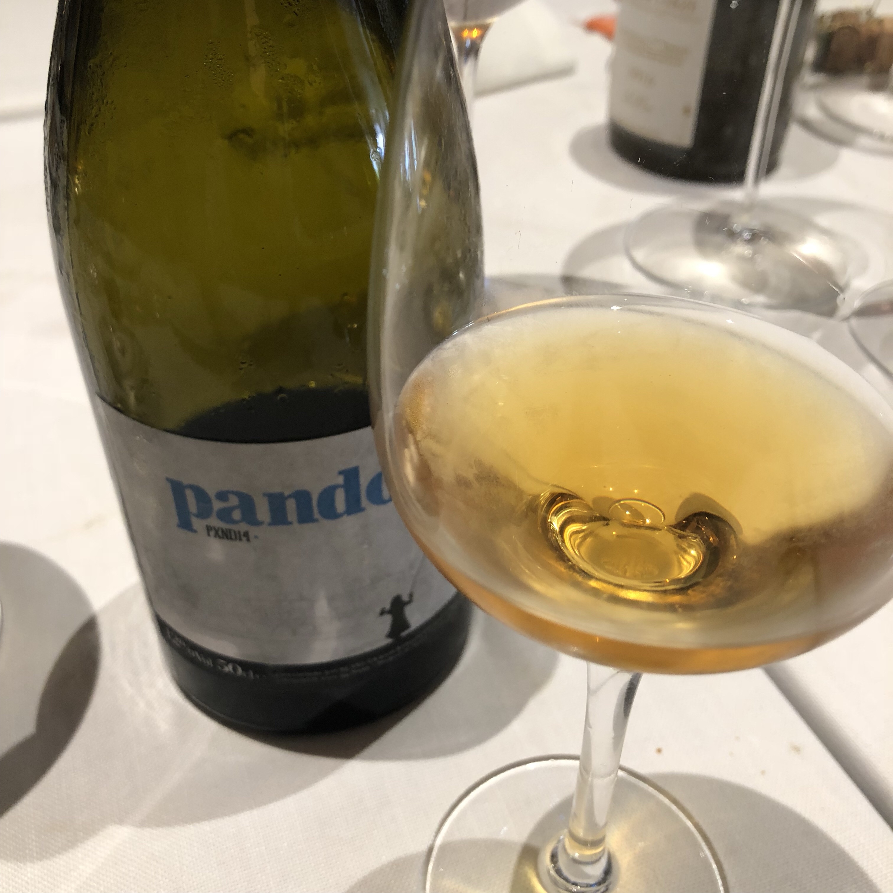 First, the wine – this is a gorgeous old oxidated wine, 100% pedro ximenez but almost fully dry – maybe just the tiniest amount of sugar – nice acidity, lovely rich flavours in a nice spectrum and no edges. Really top class, elegant but rounded wine, the kind you could enjoy best with a good book and a comfy chair.