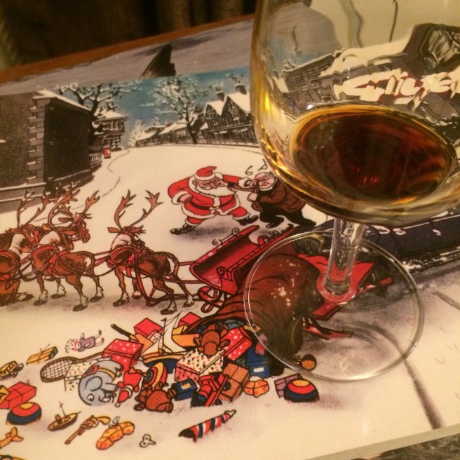 You can’t really see the colour above because I didn’t get hold of the bottle until the glass was nearly gone, but it was crystal clear and a really lovely amber colour, extremely appetising. The nose had a spirit quality that was nearer to brandy than petrol fumes, a really fine nose of caramel and alcohol. Then on the palate it had a combination of acidity and zing, that didn’t so much burn as freshen, followed by notes of caramel then quickly tobacco and leather, before a long, long bitter almond finish.