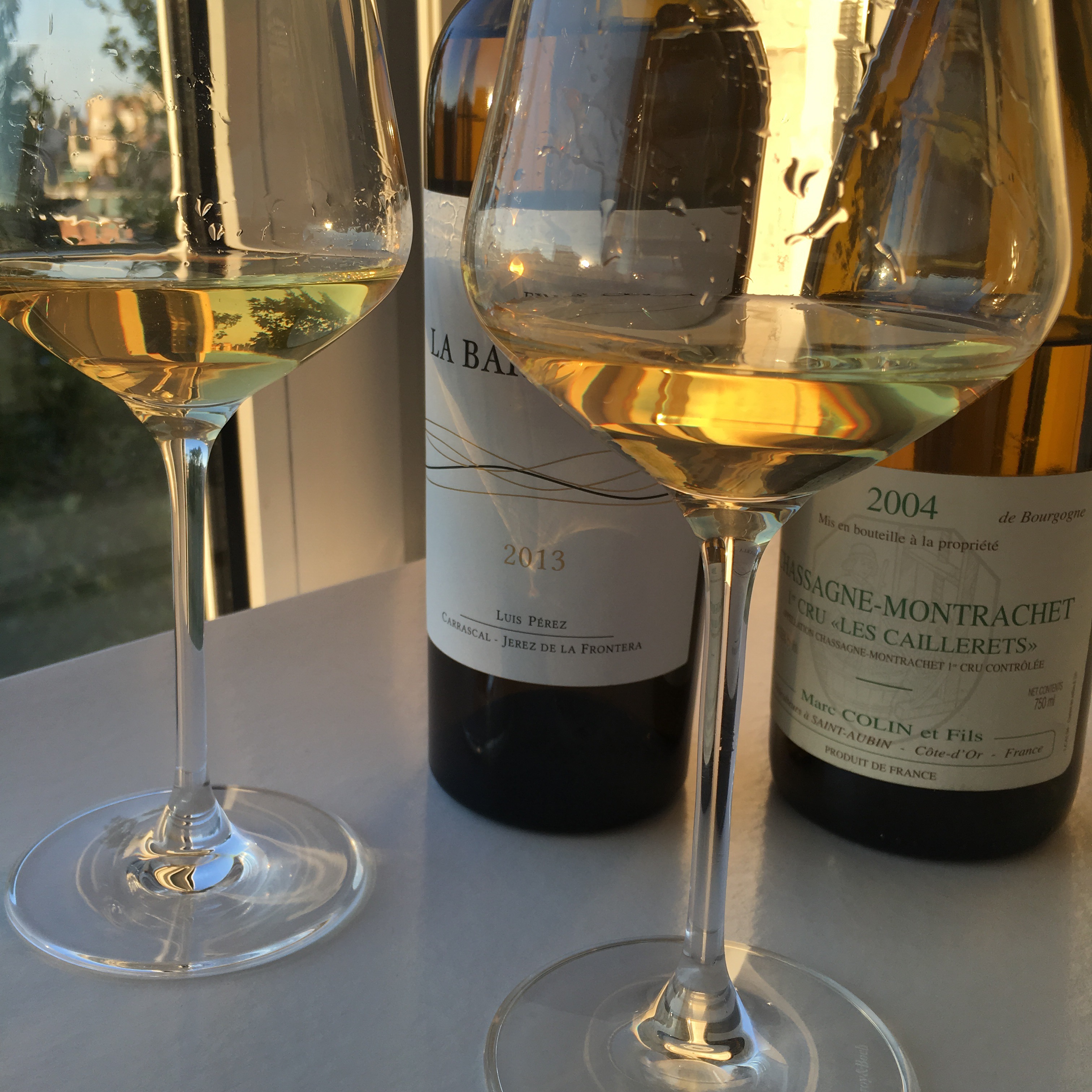 From the comments you read and hear the great wines from Jerez with a bit of personality are often likened to their cousins up in Burgundy, so I thought I would take advantage of having a nice Chassagne Montrachet open to have another look at the Fino la Barajuela.